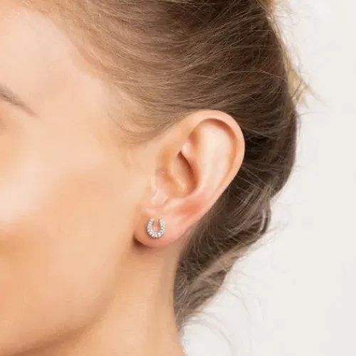 Die Sole Hufeisen Ohrringe verkörpern die perfekte Verbindung von Glück und Eleganz. Diese exquisiten Ohrringe aus rhodiniertem 925 Sterling Silber sind mit strahlenden weißen Zirkoniasteinen besetzt, die bei jedem Lichtspiel eine faszinierende Brillanz erzeugen. Die Form des Hufeisens als …traditionelles Glückssymbol wurde hier neu interpretiert und in ein zeitloses Design verwandelt. Die klaren weißen Zirkoniasteine verleihen den Ohrringen einen Hauch von Luxus und lassen sie gleichzeitig anmutig und vielseitig wirken.