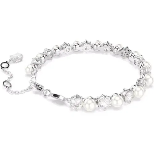 Dieses faszinierende Schmuckstück interpretiert das klassische Swarovski Tennis Armband mit einem neuen Level an Raffinesse. Das rhodinierte Design besticht rundum abwechselnd mit perfekt aneinandergereihten Swarovski Zirconia und Swarovski Kristallperlen, die diesem modernen Hingucker einen …besonders edlen Twist verleihen. Der innovative Verschluss unterstreicht die präzise Verarbeitung und sorgt für sicheren Halt am Handgelenk. Kombinieren Sie dieses Armband mit den dazu passenden Ohrringen oder der Halskette für maximalen, brillanten Glanz.
