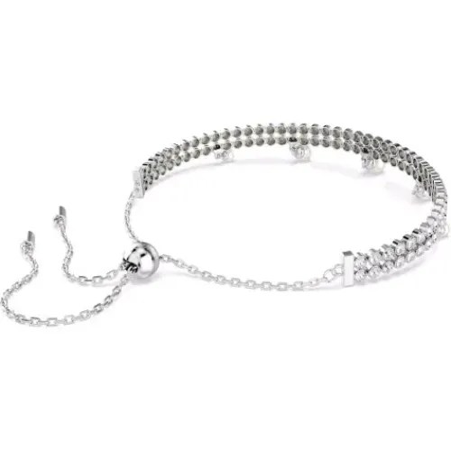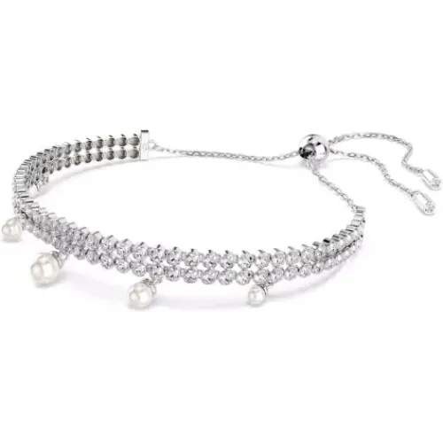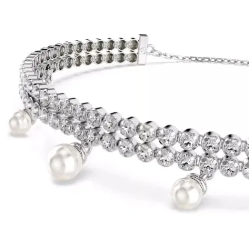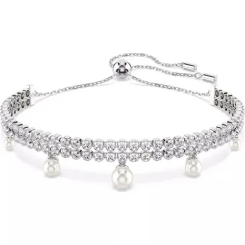 Entdecken Sie pure Eleganz mit diesem raffinierten Armband, das sich mit einem genialen Zugmechanismus an jedes Handgelenk schmiegt. Das rhodinierte, doppelreihige Cupchain-Design besticht mit klaren Swarovski Zirconia im Rundschliff. Darunter verleihen Swarovski Kristallperlen der Kreation einen …Hauch von Luxus. Kombinieren Sie dieses Armband mit dem dazu passenden Choker und kreieren Sie so Ihr ganz persönliches, ausdrucksstarkes Schmuckset.