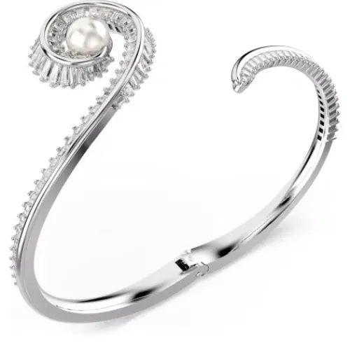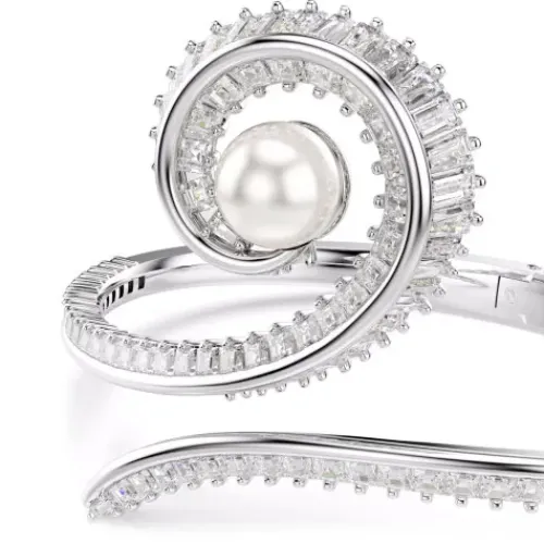 Dieser von der Musik inspirierte Armreif vereint Eleganz mit Kreativität. Das rhodinierte Design in der abstrakten Form eines Violinschlüssels ist wunderschön geschwungen und mit Swarovski Zirconia im Baguette-Schliff besetzt. Für einen zusätzlichen Hauch von Luxus schimmert in der Mitte eine …einzelne Swarovski Kristallperle. Dies ist die perfekte Möglichkeit, Ihrem Stil eine beschwingte und rhythmische Note zu verleihen.