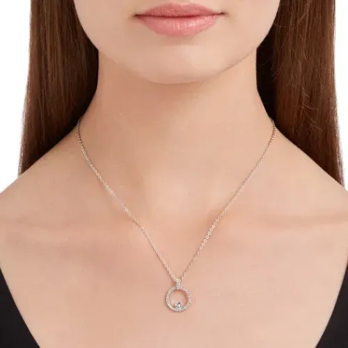 Das ist die faszinierende Neuinterpretation eines zeitlos schönen Klassikers, des Circle Anhängers. Das raffinierte Design funkelt in klarem Kristallpavé. Rhodiniertes Metall verleiht dem Anhänger eine moderne Note. Zusammen mit längeren Anhängern entsteht der trendige Lagenlook. Der 1,5 x 2 …cm große Anhänger hängt an einer 38 cm langen Kette.