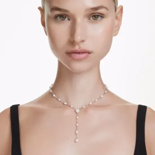 Swarovski (Kette mit) Herz-x Ariana Grande Y Halskette Kristallperle Verschiedene Schliffe Herz Weiss Rhodiniert – 5720855