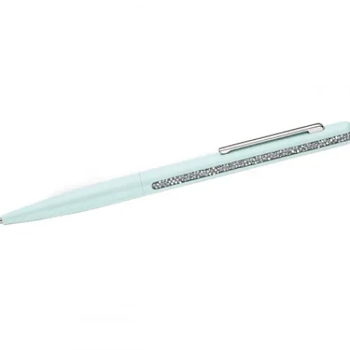 Dieser hellgrüne Swarovski Kugelschreiber kombiniert eine schlanke, elegante Silhouette mit einer modernen, minimalistischen Ästhetik. Highlight des Designs ist ein funkelnder Streifen aus Kristallen mit hellem Chromeffekt, geschaffen mithilfe unseres extrem feinen Crystal Rocks Verfahrens, der …entlang beider Seiten und um das hintere Teil des Stifts verläuft. Der Stift wird in einer eleganten Tasche geliefert und enthält einen grün lackierten Zylinder mit dem Swarovski Logo und einen verchromten Metallclip. Die hochwertige Mine lässt sich mühelos austauschen. Ein ideales Geschenk für jeden Anlass.
