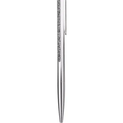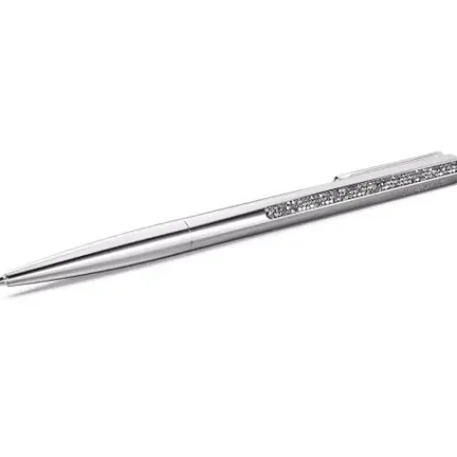 In diesem exquisiten Kugelschreiber vereint sich geschmeidige Eleganz mit modernem Minimalismus. Da muss man kreativ werden! Das einzigartig schöne, achteckige, verchromte Gehäuse und die runde Spitze präsentieren Form und Funktion in ausgewogener Optik. Akzente in Ultra Fine Crystal Rocks …lassen jedes geschriebene Wort mit schimmernder Schönheit glänzen. Der Clip und bedienungsfreundliche Drehmechanismus unterstreichen das erhabene Design. Dieser strahlende Kugelschreiber ist eine unvergessliche Geschenkidee für jeden besonderen Anlass. Ersatzminen in schwarzer und blauer Tinte sind in den Swarovski Stores erhältlich.