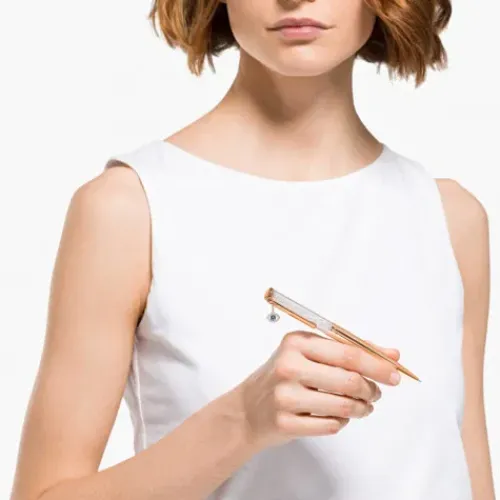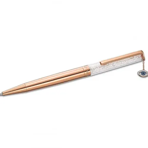 Eine einzigartige Kreation: Dieser Kugelschreiber von Swarovski ist nicht nur modisch aktuell, sondern auch noch richtig praktisch. Im Inneren des Gehäuses funkeln Hunderte zierlicher Kristalle in der kultigen Crystalline Fülltechnik von Swarovski. Der Augen-Charm mit vielen schimmernden Details …hat hohe Symbolkraft, die das Böse von Ihnen fernhalten soll. Rund um den blauen Kristall im Blickpunkt dieses Charms schimmert klares Kristallpavé. Natürlich können Sie diese Kreation ruckzuck abnehmen und mit dem sicheren Karabinerverschluss an anderen Accessoires oder Schmuckstücken befestigen. Mit dem Drehmechanismus in der Mitte des Kugelschreibers lässt sich die Mine schnell und leicht austauschen. Ein äußerst charmantes Geschenk für praktisch jeden Anlass.