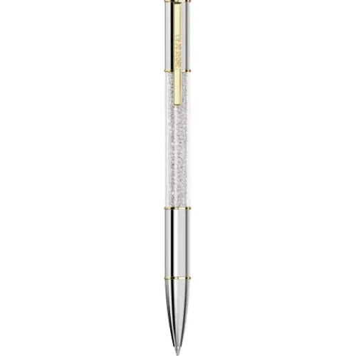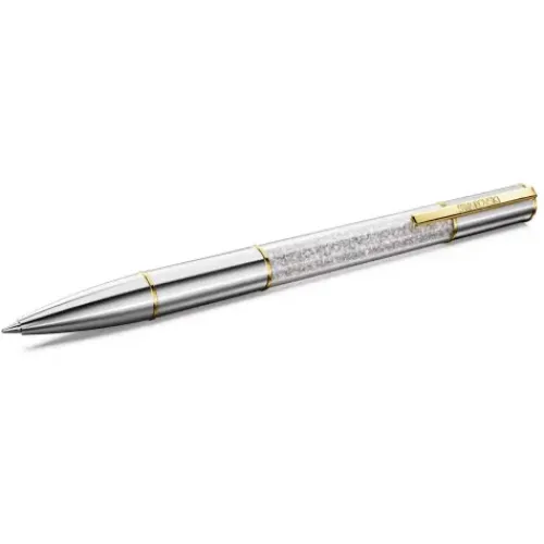 Aus dem Crystalline Lustre Kugelschreiber sprechen Kreativität und Luxus. Das markante Schreibgerät besticht mit einem silberfarbenen Rundgehäuse und goldfarbenen Akzenten, darunter auch ein praktischer Clip mit der eingravierten Swarovski Wortmarke. Im Zentrum dieses Hinguckers glänzen rund …480 Kristalle in der exklusiven Crystalline Fülltechnik von Swarovski. Er besticht als Highlight auf Ihrem Schreibtisch oder als edle Geschenkidee für die kreativen Köpfe in Ihrem Leben. Ersatzminen in schwarzer und blauer Tinte sind in den Swarovski Stores erhältlich.