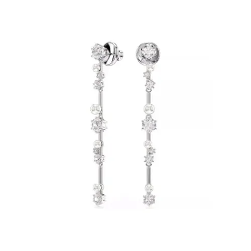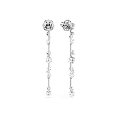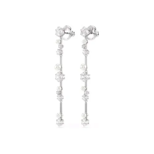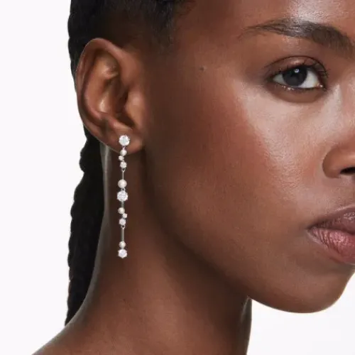 Diese schwingenden Constella Ohrhänger wirken wie ein Kometenschweif voller Zauber und Licht. Die rhodinierten Schmuckstücke präsentieren Cluster in verschieden großen Swarovski Zirconia und Swarovski Kristallperlen, die zwischen den Metallstegen fast zu schweben scheinen. Sie verleihen jedem …Outfit – und damit auch Ihnen – galaktischen Glanz.