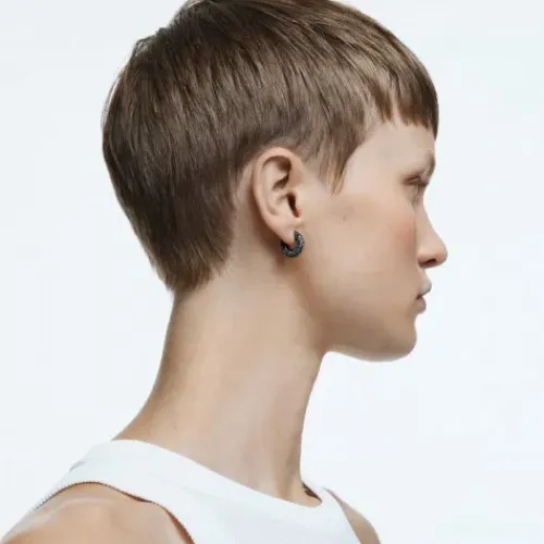Diese moderne Interpretation klassischer Kreolen im Unisex-Design verleihen jedem Outfit einen dynamischen Akzent. Das skulpturartige Design ist eine Hommage an die legendäre Pavé-Technik von Swarovski, mit glitzernden Kristallen im Foiled-Schliff, die auf einen mit Ruthenium beschichteten …Rahmen gesetzt werden. Tragen Sie sie nicht nur tagsüber, sondern auch nach Einbruch der Dunkelheit als spannendes Statement-Duo. Die Ohrringe wurden von Creative Director Giovanna Engelbert für die Dextera Familie aus der Collection II entworfen.