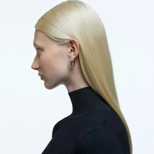 Als Hommage an die raffinierte Pavé-Technik von Swarovski setzen diese komplex-detailreichen und doch selbstbewussten, kleinen achteckigen Kreolen ein modernes Statement. Zarte, weiße Kristalle in rhodinierten Fassungen unterstreichen das industriell angehauchte Design, das Sie entweder allein …oder gemeinsam mit weiteren Stücken aus der Dextera Familie stylen können.