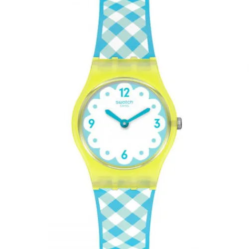 Geschlecht Damen Produktart Uhren Anzeige analog Farbe Gehäuse gelb Farbe Armband weiss, blau/türk…