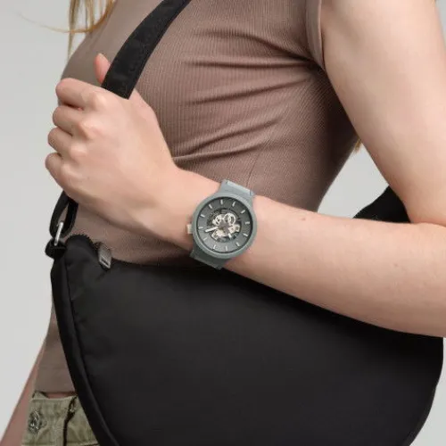 Diese übergrosse Uhr besticht durch ihr graues, offenes Zifferblatt mit hellbeigefarbenen 3D-Indizes, grauem Stunden- und Minutenzeiger mit fluoreszierendem Effekt, grauem Sekundenzeiger und hellbeigefarbenen Uhrwerkselementen unter biobasiertem Uhrenglas. Komplettiert wird das biobasierte …Gehäuse in Mattgrau mit farblich passender Lünette durch ein mattgraues Armband mit hellgrauer Struktur, mattgrauen und hellbeigefarbenen Schlaufen und einer Schliesse in Mattgrau.