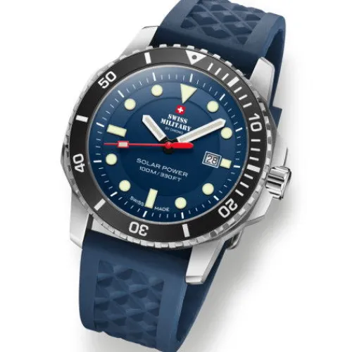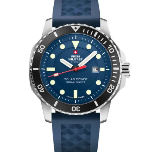 Die Swiss Military SMS34102.04 vereint solarbetriebene Effizienz, robustes Design und Schweizer Handwerkskunst – der ideale Schweizer Solarzeitmesser für jedes Abenteuer.