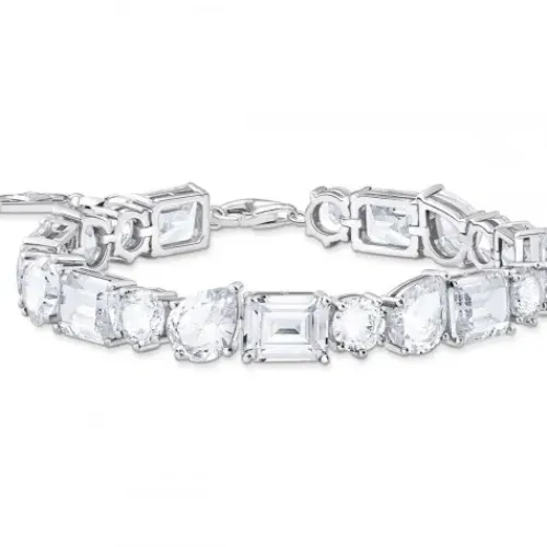 Glamour pur: Das Tennisarmband ist aus hochwertigem 925er Sterlingsilber gestaltet und mit 20 weißen Zirkonia-Steinen unterschiedlicher Größe aufwendig besetzt. Sie erstrahlen im Rund-, Tropfen- oder Oktagonschliff. Dank offener Krappenfassung ist ihr Farbenspiel bei Lichteinfall besonders …schön – das sorgt für exklusives Funkeln.