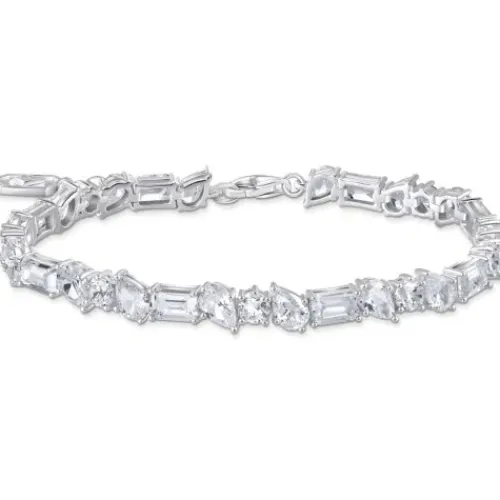 Setze auf klassisches Weiß und glamouröses Funkeln für deinen großen Auftritt. Dieses Tennisarmband aus recyceltem Silber vereint zeitlose Eleganz mit einem strahlenden Statement. Es ist mit 31 Zirkonia-Steinen in Weiß besetzt. Im Rund-, Tropfen- oder Oktagonschliff sorgen sie für eine …einzigartige Brillanz und eine extravagante Optik.