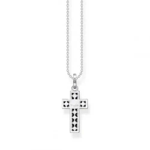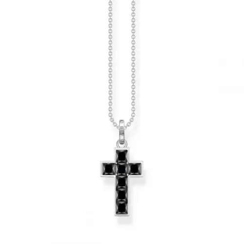 Zeitlose Eleganz: Die Kette mit Anhänger ist aus hochwertigem, leicht geschwärztem 925er Sterlingsilber gearbeitet. In der Form eines klassischen Kreuzes gestaltet, erstrahlt der Kettenanhänger mit schwarzen Zirkonia-Steinen im edlen quadratischen Prinzessschliff, die von Hand in zeitlose …Kanalfassung gesetzt wurden. Das sorgt für einen stilvollen, minimalistischen Look. Die Öse des 4 cm langen Kreuz-Anhängers ist mit THOMAS SABO Gravur verziert.