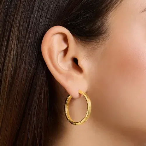 Perfekte Begleiter für jeden Anlass: Die Creolen mit einem Durchmesser von 3,5 cm sind aus handpoliertem 925er Sterlingsilber im zeitlosen Design gestaltet und mit 750er Gelbgold-Vergoldung veredelt. Ihr schlichter, klassischer Look macht sie zu idealen Accessoires für jeden Anlass und jedes …Outfit. Damit sind sie Must-haves für jedes Schmuckkästchen.