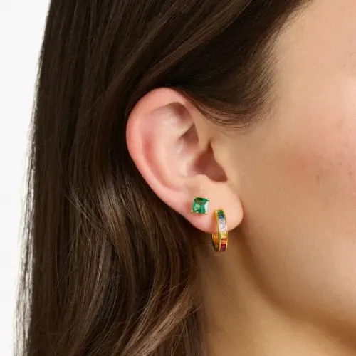 Thomas Sabo Ohrringe-Creolen mit Bunten Steinen Pavé Vergoldet- CR668-996-7
