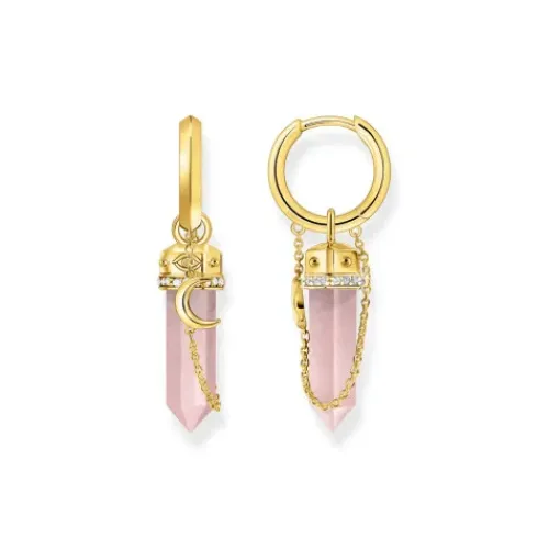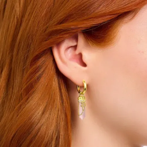 Empfinde die Wirkung von Heilsteinen nach: Der Rosenquarz soll Selbstliebe und Mitgefühl fördern sowie negative Energie absorbieren. Aufgrund seiner romantischen Farbe gilt er als Stein bedingungsloser Liebe. In Form eines sechseckigen Kristalls geschliffen, krönt er als Anhänger diese Creolen …aus recyceltem Silber mit 18k-Vergoldung. Seine Fassung ist mit Dots, weißen Zirkonia-Steinen, Schlange und Halbmond sowie einer filigranen Schmuckkette aufwendig gestaltet.