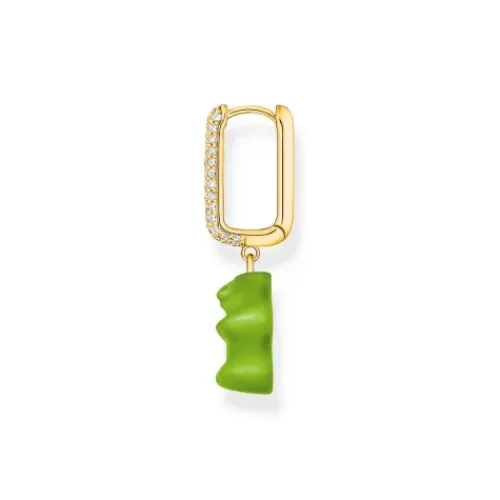 Thomas Sabo Ohrringe-Einzel Creole mit grünem Goldbären-Anhänger in Midiversion und Steinen vergoldet – CR727-414-6
