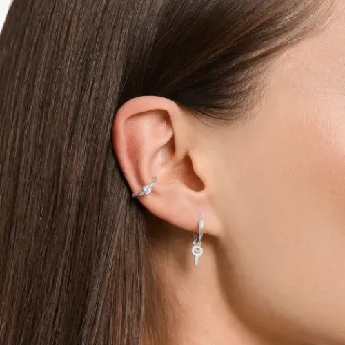 The key to happiness: Der Ohrring-Anhänger punktet mit seiner filigranen Schlüsselform und den funkelnden, weißen Zirkonia-Steinen. Er besteht aus hochwertigem 925er Sterlingsilber und lässt sich ganz einfach in die Single-Creole einhängen. Perfekt für individuelle Looks.