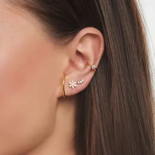 Für coole Ear Candy Looks: Schlichter Single Ear Cuff aus 925er Sterlingsilber mit 750er Gelbgold-Vergoldung. Er lässt sich ganz nach Belieben am Ohr befestigen und mit weiteren Ohrklemmen, Ohrsteckern und Creolen kombinieren. Das macht ihn zum perfekten Schmuckstück für angesagte …Schmuckkreationen im Ear Candy Stil. Create your favourite look.