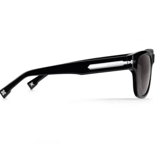 Glänzendes Acetat und breite Bügelform. Ikonisches T-Signature-Design als Scharnier. Seitliches THOMAS SABO Logo auf in die Acetatbügel integrierter grafischer Metalleinlage. Bügelenden mit ikonischen Rebel-Cross-Verzierungen von THOMAS SABO. THOMAS SABO Logo-Branding auf dem Glas.