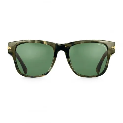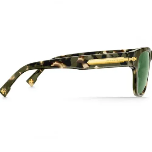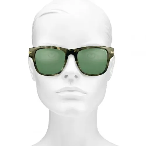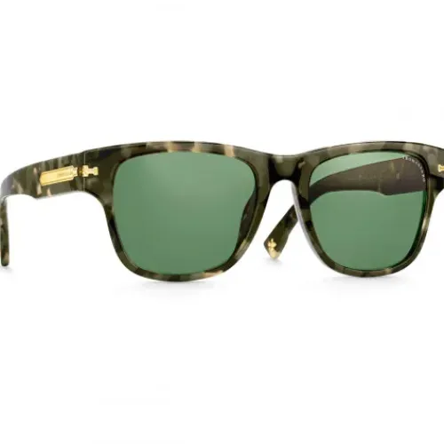 Glänzendes Acetat und breite Bügelform. Angesagte, semitransparente Camouflage-Optik. Ikonisches T-Signature-Design als Scharnier. Seitliches THOMAS SABO Logo auf in die Acetatbügel integrierter grafischer Metalleinlage. Bügelenden mit ikonischen Rebel-Cross-Verzierungen von THOMAS SABO. …THOMAS SABO Logo-Branding auf dem Glas.