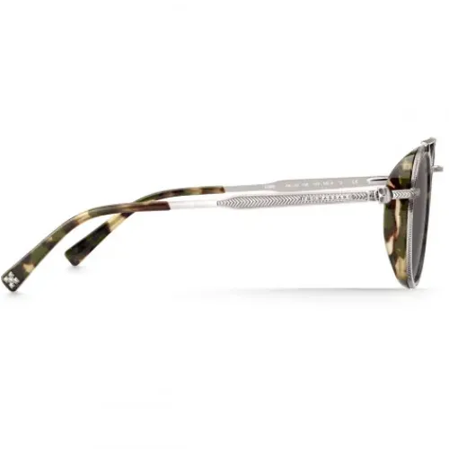 Detailreich geprägter Metallrahmen, Nasensteg, Brow Bar und Bügel mit grafischem Design. Fassung der Gläser mit angesagtem Metall-Acetat-Mix. Seitliches Shield für ein Vintage-inspiriertes Tragegefühl. Ikonisches THOMAS SABO Skull-Scharnier an den Bügeln. Weiche Nasenpads aus transparentem …Silikon mit THOMAS SABO Muster. Hoher Tragekomfort durch Acetateinfassung der Bügelenden. Bügelenden mit appliziertem Rebel-Cross-Motiv im THOMAS SABO Style. THOMAS SABO Logo-Branding auf dem Glas sowie seitlich außen an den Bügeln.
