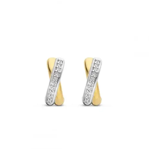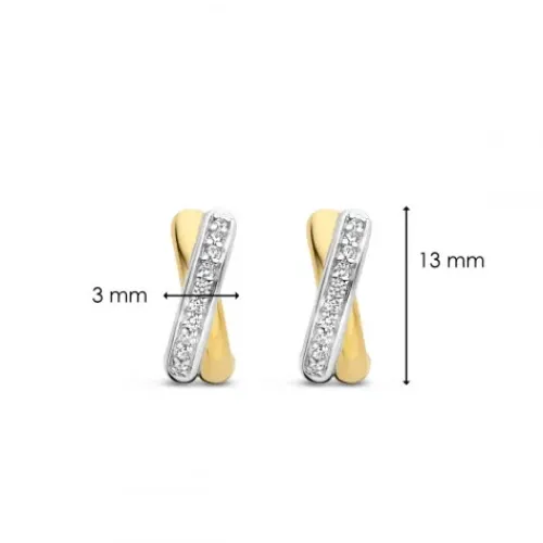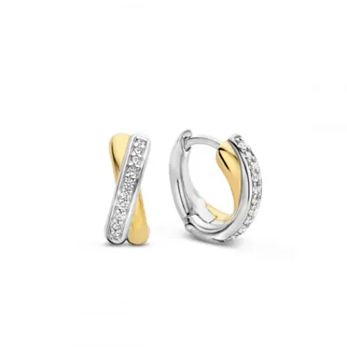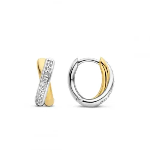 Die TI SENTO – Milano Ohrringe aus vergoldetem Silber 7667ZY bestehen aus zwei sich kreuzenden feinen Kreisen – einer davon ist vergoldet, der andere aus Silber – die mit einem Pavé aus handgefassten weißen Zirkoniasteinen verziert sind. Die Ohrringe sind aus 925er Sterlingsilber gefertigt …und mit 18 Karat Gold beschichtet. Tragen Sie sie mit Ohrsteckern oder anderen Hoop-Ohrringen und kreieren Sie Ihre eigene Ohrparty.