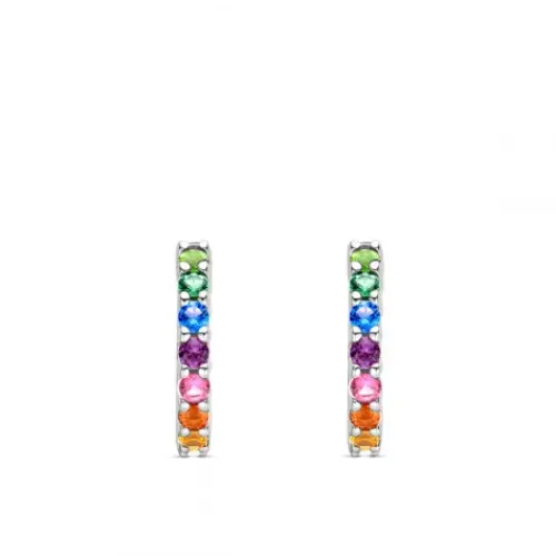 Die TI SENTO – Milano Regenbogen-Hoops 7906MC sind mit einem wunderschönen Regenbogenpavé aus farbenfrohen Cubic Zirkonia (CZ) besetzt. Sie sind aus hochwertigem 925er Sterlingsilber gefertigt und mit einer Platinschicht überzogen, die sie vor dem täglichen Tragen schützt und sie leuchten …lässt. Sie sind völlig nickelfrei und hypoallergen. Tragen Sie diese farbenfrohe und leichte Regenbogenenergie mit sich… und lächeln Sie!