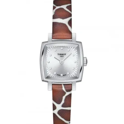 Die Tissot Lovely kleidet raffinierte Eleganz in zeitloses Design. Wird die Uhr locker am Handgelenk getragen, wirkt sie wie ein atemberaubendes Schmuckstück. Diese Ausführung aus der Tissot Lovely Kollektion besitzt ein viereckiges Gehäuse mit darüber hinausragendem, abgeschrägtem und …kratzfestem Saphirglas. Das Modell verfügt über ein 316L-Edelstahlgehäuse und ein makelloses, schlichtes Zifferblatt in Silber mit 12 Diamanten. Das schmale Synthetikarmband mit Dornschließe sorgt dank seines Giraffenlooks für einen tollen Kontrast. Alle Tissot Lovely Uhren werden von einem präzisen Swiss Made Quarzwerk angetrieben, damit Sie Tag und Nacht mit der Zeit Schritt halten können.
