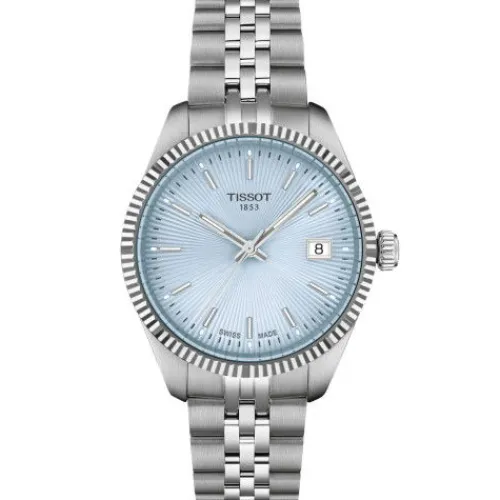 Diese Ausführung der Tissot Ballade 34mm besitzt ein 316L-Edelstahlgehäuse mit 34 mm Durchmesser und kratzfestem, entspiegeltem Saphirglas. Ihr eisblaues Zifferblatt verfügt über eine Datumsanzeige bei 3 Uhr. Mit SuperLuminova® Leuchtbeschichtung versehene Zeiger und Indizes gewähren beste Ablesbarkeit.