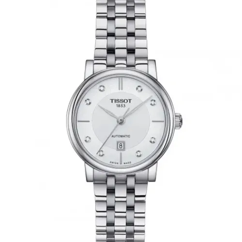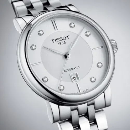Durch ihr puristisches Design, ihre Stilsicherheit und die schmeichelhaften Veredelungen wird die Tissot Carson Premium Automatic Kollektion immer perfekt sein. Als „Innovator by Tradition“ fügt Tissot dem die Anerkennung und Kraft seines Namens hinzu, der international für die Qualität …seiner Swiss Made Produkte gerühmt wird. Die Tissot Carson Lady verführt durch ihre sanften und klassischen Kurven, die sie zu einem unverzichtbaren Accessoire machen. Sie passt zu allen Styles, allen Anlässen und allen Lebensphasen. Das Gehäuse mit 30 mm und die eleganten Armbänder aus 316L-Edelstahl oder Leder machen die Uhr zu einem schönen Hingucker. Ihr Zifferblatt besteht aus einem äußeren, satinierten Bereich sowie einem zentralen Kreis in der Mitte des Zifferblatts, welches mit feinen, kreisförmigen Strichen das Licht einfängt. Ihr Automatikuhrwerk wurde aufgrund seiner Zuverlässigkeit und hohen uhrmacherischen Qualität ausgewählt. Es weiß ebenso sich unauffällig zu verhalten wie sich über den Sichtboden ihrer Besitzerin ins Gedächtnis zu rufen. Zu den Merkmalen dieser Damenuhr gehören ein Swiss Made Automatikwerk, ein kratzfestes Saphirglas mit Entspiegelungsbeschichtung, ein 316L – Edelstahlgehäuse sowie eine Datums-Anzeige.
