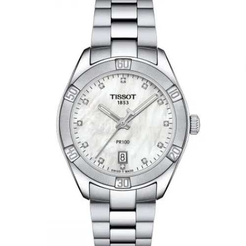 Die zeitlose Tissot PR Kollektion wurde um die Tissot PR 100 Sport Chic erweitert. Die PR 100 Kollektion ist in vielen verschiedenen Ausführungen zu haben und dies ist einer der Gründe, warum dieses Modell so beliebt ist. Zu den Merkmalen dieser sportlichen Ausführung gehört ein Swiss Made …Quarzwerk mit Batterie-Endanzeige, ein kratzfestes Saphirglas und eine Datumsanzeige. Dieses Damenmodell aus der Tissot PR 100 Kollektion hat ein 316L-Edelstahlgehäuse und ein weißes Perlmutt-Zifferblatt mit Diamanten als Indizes. Die Zeiger sind mit Superluminova beschichtet. Das schöne Edelstahlarmband hat eine Faltschließe mit Drückern.