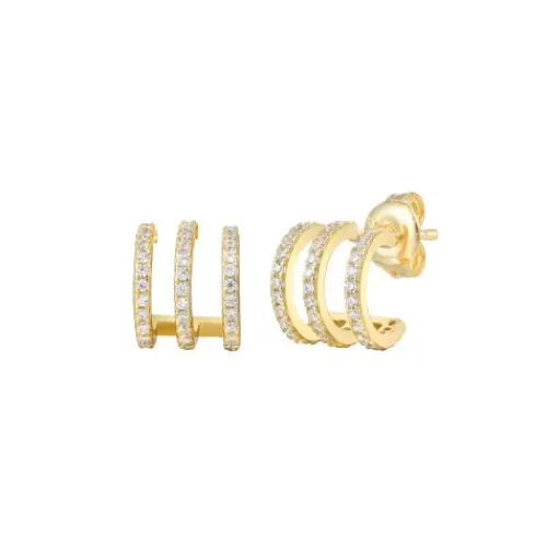 Unsere TRIO Creolen aus 18 Karat vergoldetem und recyceltem 925/- Sterlingsilber mit funkelnden Zirkonia Steinen besetzt, sind eine elegante Verschmelzung von Vielseitigkeit und Stil. Ihr Design mit drei Ringen und den Zirkonia Steinen verleiht ihnen Glamour und Zeitlosigkeit. Diese Creolen sind …die perfekte Mischung aus Luxus und Moderne und setzen deinem Look Eleganz und Glanz hinzu.