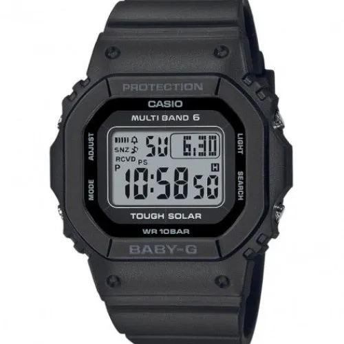 Der klassische, quadratische Look der BABY-G, den alle lieben – eine kompakte, lässige Uhr für dein aktives Leben. Das kleinere BGD-5650-Gehäuse ist 2,6 mm kürzer, 2,1 mm schmaler und 1,2 mm flacher als sein Vorgänger, die BGD-5000. Diese Uhren bieten Funktionalität in jeder Hinsicht. Dank …der Tough Solar Funktion versorgt sie sich nachhaltig mit Energie und die Funktechnologie sorgt für exakte Zeit in sechs Regionen der Welt, damit Sie immer pünktlich sind, egal, wo Sie sich befinden. Sie ist außerdem bis 10 Bar wasserdicht. Diese Baby-G ist ein ideales Accessoire für jede Jahreszeit und jeden Modestil.