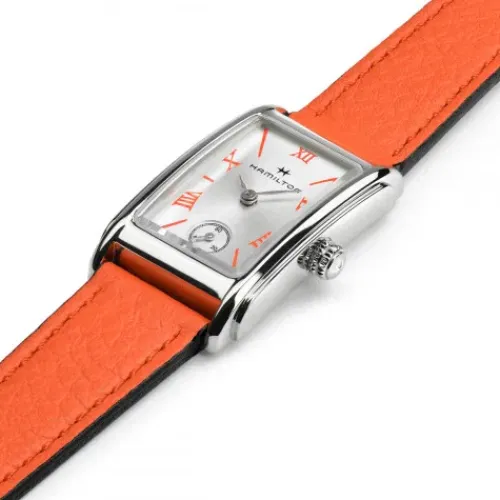 Mit einem dynamischen Lederarmband in Koralle und farblich abgestimmten römischen Ziffern schafft die Lady Ardmore Quartz den Sprung vom subtilen Art-Déco-Revival hin zu einer luxuriösen, hochaktuellen Statement-Uhr. Mit ihrem Mix aus American Classic Style und moderner Farbgebung ist das …kantige Gehäuse raffiniert und fröhlich zugleich und zieht garantiert alle Blicke auf sich.