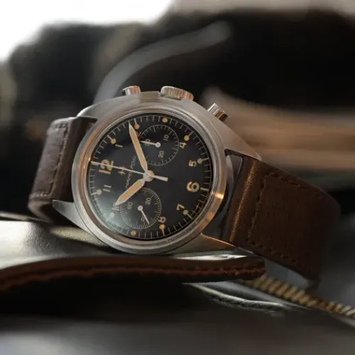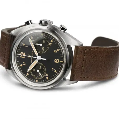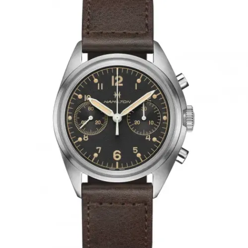 Mit seinem markanten militärischen Fliegerdesign in Vintage-Optik bringt der Khaki Pilot Pioneer Mechanical Chronograph die Form und Funktion der Chronographen zurück, mit denen die Piloten der British Royal Air Force in den 1970er-Jahren ausgestattet waren. Die robuste, zuverlässige Uhr in …40mm-Grösse wird von unserem exklusiven Handaufzugswerk H-51-Si angetrieben.