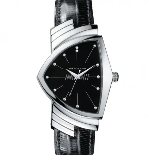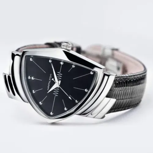 Die originale Ventura aus dem Jahr 1957 ging als erste batteriebetriebene elektrische Uhr in die Geschichte der Uhrmacherkunst ein. Mit ihrem gewagten und charakteristischen Design wurde sie schnell zu einer Ikone und einem Sammlerstück. Die neueste Auflage der Ventura ist eine treue Hommage an …das Original und spiegelt die avantgardistische Schildform des modernen Designs aus der Mitte des Jahrhunderts wider.