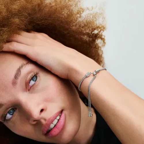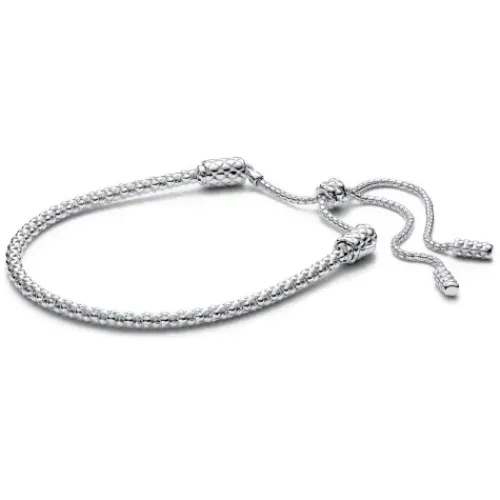 Lerne das Pandora Moments Schiebeverschluss-Nietenarmband kennen – unsere legendäre Nietenkette, neu interpretiert. Bewege den Schieberegler, um das Armband für einen perfekten Sitz einzustellen – Silikon an der Innenseite hält es an Ort und Stelle. Funktionale Endkappen können durch …Klicken geöffnet werden, um deine Charms hinzuzufügen. Kleinere dekorative Endkappen schließen die Enden der Kette ab. Das reflektierende Nietenmuster setzt sich über die gesamte Kette und die Endkappen fort und sorgt für einen Tarneffekt. Du kannst dieses Armband aus Sterling-Silber mit bis zu 10 Charms oder Charm-Anhängern stylen. Kombiniere es mit unseren vorhandenen Nietenarmbändern für einen Ton-in-Ton- oder einen Mixed-Metal-Look.