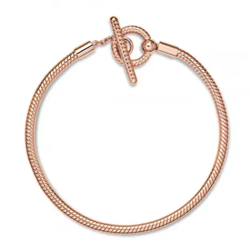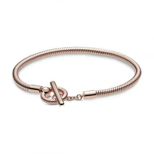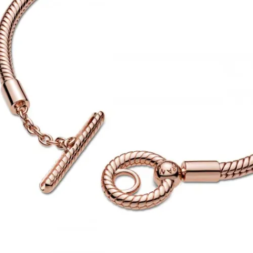 Erweitere Deine Schmucksammlung mit dem Pandora Moments Schlangen-Gliederarmband mit T-Verschluss. Das von Hand veredelte rosévergoldete Schmuckstück ist eine moderne Interpretation des beliebten Pandora Moments Schlangen-Gliederarmbands. Führe den T-Verschluss durch den kleineren der beiden …Kreise, um das Armband sicher zu verschließen. Das Armband ist an den starren Teilen mit einem Schlangengliedermuster versehen und kann bis zu 15-20 Pandora Moments Charms und Anhänger aufnehmen.