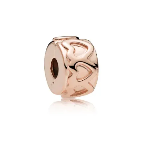 Unser Gereihte Herzen Clip ist mit einer Reihe aus romantischen Herzen verziert und die perfekte Ergänzung für Dein Pandora Moments Armband. Das erhabene Design in Rosévergoldung verleiht Deinem Look zusätzliche Tiefe. Kombiniere das handveredelte Schmuckstück mit anderen Sterling-Silber …Charms und erzähle mit glänzenden Highlights Deine ganz persönliche Geschichte. Der Clip besitzt keinen Silikonkern und muss auf festen Gewinden sitzen, damit er nicht verrutscht.