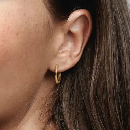 Kreiere mit den Pandora Moments Kleine Charm-Ohringen sofort einen ikonischen Look. Diese vergoldeten Ohrringe haben das berühmte Schlangengliederkettenmuster von Pandora. Diese kleinen Ohrringe haben einen Durchmesser von 18 mm, verglichen mit dem bestehenden 25-mm-Modell, und können ein Charm …oder einen Charm-Anhänger aufnehmen. Diese Ohrringe sind für sich elegant oder können mit deinen Lieblingscharms kombiniert werden. Sie sind auf jeden Fall ein Stilgewinn. Bitte beachte, dass aufgrund der kleineren Größe und Dicke der Creolen einige Charms möglicherweise nicht auf diese Ohrringe passen.