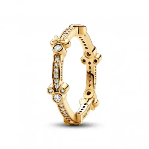 Zeig mit dem Disney Micky Maus & Minnie Maus Funkelnder Ewigkeitsring, was für ein großer Disney-Fan du bist. Dieser elegante und zarte vergoldete Ring ist mit einem Pavé-Band versehen, das mit Steinen in Zargenfassung in verschiedenen Formen funkelt. Das Band ist in gleichem Abstand mit einem …herzförmigen und einem sternförmigen Stein besetzt. Dazwischen befinden sich zwei Sets aus runden Steine in Form der Köpfe von Micky Maus und Minnie Maus. Eine perfekte funkelnde Überraschung für den größten Disney-Fan in deinem Leben.