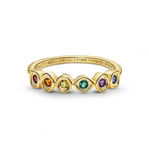Mit diesem Marvel The Avengers Infinity Steine Ring hältst Du die Macht der Infinity Steine buchstäblich in den Händen. Unser Ring ist perfekt ausgeglichen, wie alle Dinge sein sollten. Das mächtige Schmuckstück ist 14 Karat vergoldet und mit bunten künstlichen Kristallen versehen, die die …begehrtesten Objekte im Universum repräsentieren. An der Innenseite des Ringbands ist die jeweilige Kraft jedes Steins eingraviert: Raum, Realität, Macht, Seele, Gedanken und Zeit. Kombiniere den Ring im Kampf gegen das Böse mit anderen Schmuckstücken aus unserer Marvel x Pandora Kollektion.