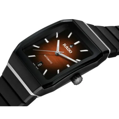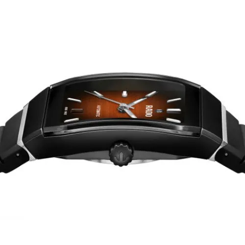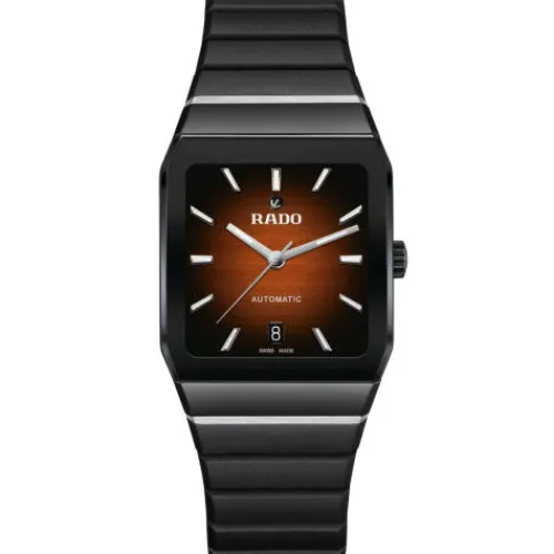 Entdecken Sie mit der Rado Anatom Automatic die perfekte Harmonie zwischen Komfort und Ästhetik. Angetrieben von einem Rado R766 Uhrwerk und ausgestattet mit einer antimagnetischen Nivachron™ Spiralfeder bietet diese Uhr eine präzise Zeitmessung und mühelose Eleganz. Das langlebige und …elegante Modell besticht durch eine Lünette aus mattschwarzer Hightech-Keramik und ein zylindrisch geformtes Saphirglas mit Antireflexionsbeschichtung auf der Innenseite. Der transparente Gehäuseboden aus Edelstahl gibt den Blick frei auf das faszinierende Innenleben der Uhr. Das Zifferblatt besticht mit einem Farbverlauf von Cognac zu Schwarz, der dem Uhrendesign noch mehr Tiefe und Anziehungskraft verleiht. Das schwarze Kautschukarmband bietet höchsten Tragekomfort. Es wird von einer Dreifachschliesse aus gebürstetem Edelstahl mit einer Abdeckung aus mattschwarzer Hightech-Keramik komplettiert. Die Uhr ist bis zu von 50 m wasserdicht. Dank ihrer zeitlosen Eleganz und Präzision ist sie der perfekte Begleiter –egal, ob Sie neue Horizonte entdecken oder bei einem formellen Anlass für Aufsehen sorgen wollen.