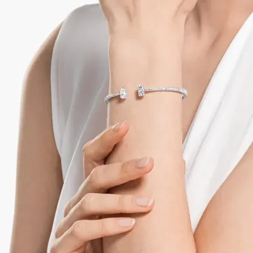 Suchen Sie einen Klassiker, der Sie überallhin begleitet? Dieser Armreif von Swarovski ist ein zeitlos schönes Design, das alle Trends überdauert. Schimmerndes Kristallpavé kreiert einen dynamisch funkelnden Look. Das große weiße Tropfenelement setzt vollendete Kontraste zu den …gegenüberliegenden Rechteck- und Rundelementen am anderen Ende des Armreifs. Die Kreation ist so zeitlos, dass sie den Alltag immer und überall glänzen lässt.