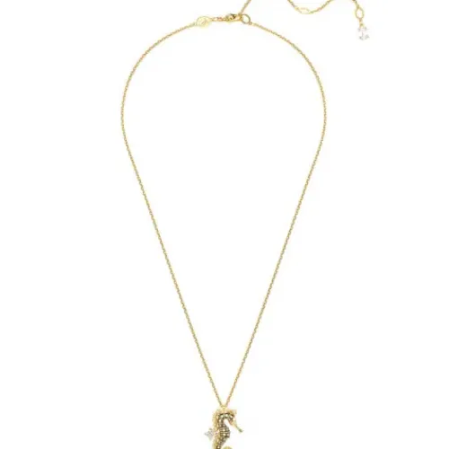 Mit diesem Seepferdchen als Anhänger tauchen Sie tief in Swarovskis Unterwasserwelt. Die atemberaubend schöne Kreation an einer zierlichen Kette präsentiert ein zierliches Motiv der Meere, kunstvoll verziert mit vielen Swarovski Kristallperlen, klaren Kristallen und White Swarovski Zirconia. …Dieses Design mit Metallakzenten in glänzender Goldlegierungsschicht entfacht die Fantasie. Wenn das Meer ruft, ist diese Kreation genau das Richtige!