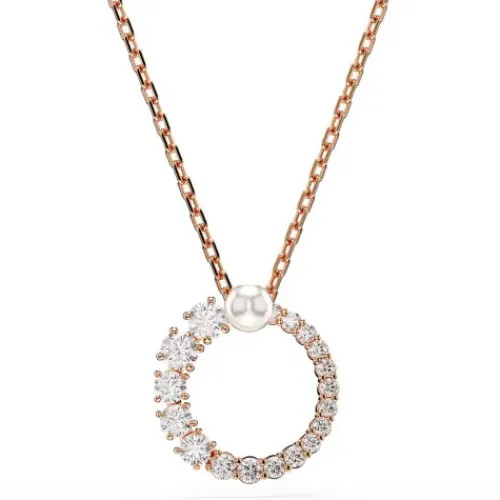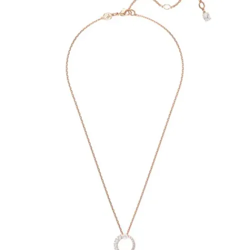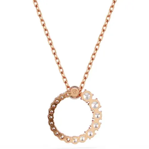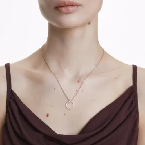 Die edlen Formen und modernen Details dieses eleganten Matrix Anhängers ziehen die Aufmerksamkeit auf sich. Das Design in Roségold-Legierungsschicht mit einem Kreis in klaren Swarovski Zirconia in einem nahtlosen Größenverlauf und einer zentralen, weißen Swarovski Kristallperle hängt an …einer zierlichen Kette. Für maximale Wirkung stylen Sie diese Kreation mit einem einfarbigen Outfit.