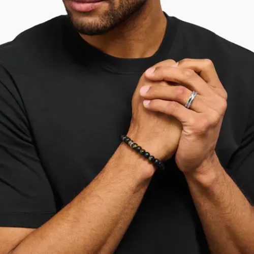 Lass dich von Kraft und Ausstrahlung dieses Armbands inspirieren. Es kombiniert schwarze, matte Obsidian-Beads mit polierten, blaugoldenen Tigerauge-Beads. Alle sind 9 mm groß. Ein Logo-Ring aus recyceltem und geschwärztem Silber mit THOMAS SABO Gravur setzt einen eleganten Akzent. Ob als …Geschenk für Lieblingsmenschen oder Talisman – das Bead-Armband ist die richtige Wahl. Denn Obsidian soll heilend wirkend und Tigerauge Schutz bieten.